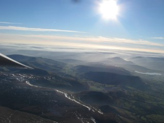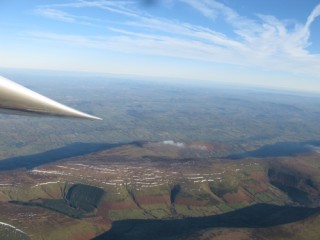 I managed to get to 9300 QNH, others managed higher, as there seemed to be several wave systems and there was an area where they came together over the river between Talgarth and Hay. The primary from the Black Mountains seemed to topple back into wind so that we were finding good wave lift over the middle of the mountains, well south of the Ydas to Hay ridge. At least that’s what I imagined it was happening!